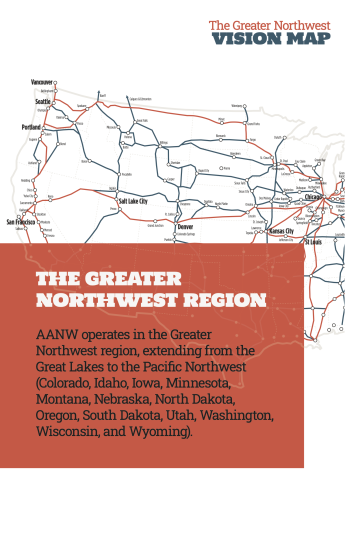 Here's a sneak preview of AANW's display materials that will premiere at the Greater Northwest Passenger Rail Summit in Boise, Ju,y 19-20. They are branded for AAWA, AORTA and AANW. We plan to make 8 boards that will fit on the portable display that Dan McFarling is making available, shown here.